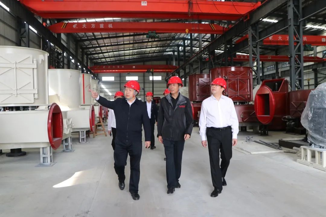 古書記等領(lǐng)導(dǎo)一行人在肖董的陪同下,走訪了公司生產(chǎn)現(xiàn)場,深入的了解桂礦的經(jīng)營現(xiàn)狀。肖董向領(lǐng)導(dǎo)們匯報了公司的技術(shù)創(chuàng)新、發(fā)展戰(zhàn)略、市場需求趨勢等情況。并特別介紹了公司新研發(fā)的氫氧化鈣生產(chǎn)線與超細(xì)立磨等新產(chǎn)品。領(lǐng)導(dǎo)們對桂礦的發(fā)展給予了充分的肯定,并鼓勵加大創(chuàng)新力度,做好產(chǎn)品開發(fā)、推廣及應(yīng)用工作,繼續(xù)保持住良好的發(fā)展勢頭。