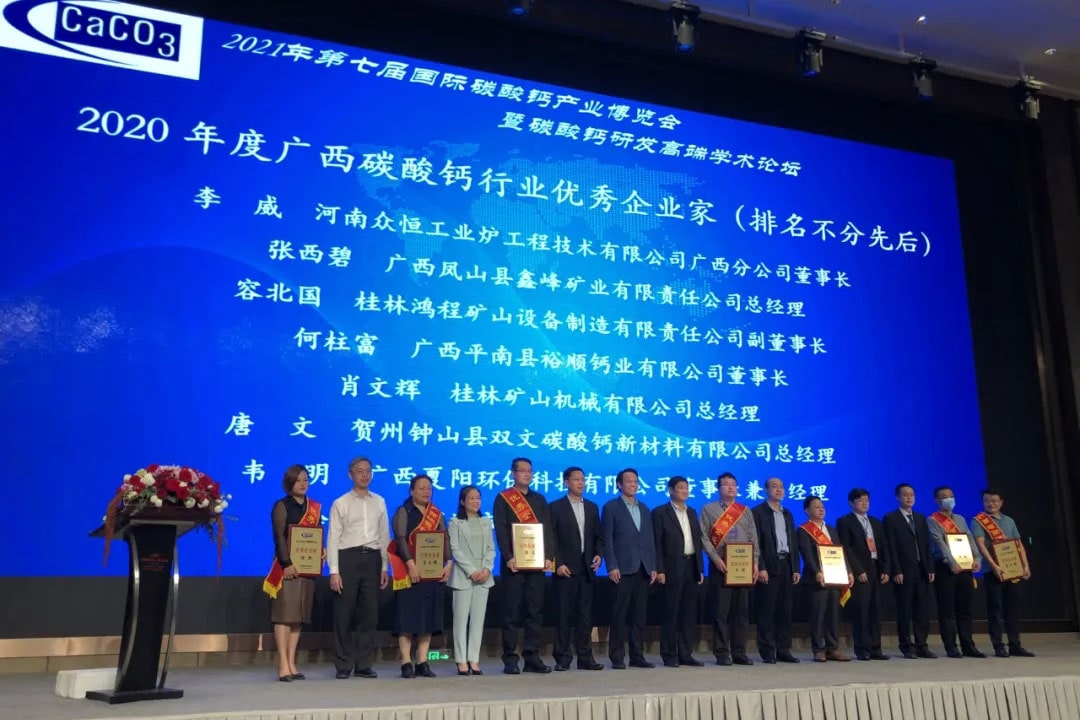 桂林礦機(jī)作為礦山機(jī)械的重要一員,公司從第一屆開始積極參與協(xié)會會議會展,公司領(lǐng)導(dǎo)也非常支持協(xié)會各項工作并投身綠色發(fā)展道路。會中,公司領(lǐng)導(dǎo)肖文輝獲得2020年度廣西碳酸鈣行業(yè)優(yōu)秀企業(yè)家,同時公司還榮獲了廣西碳酸鈣行業(yè)協(xié)會優(yōu)秀會員獎。