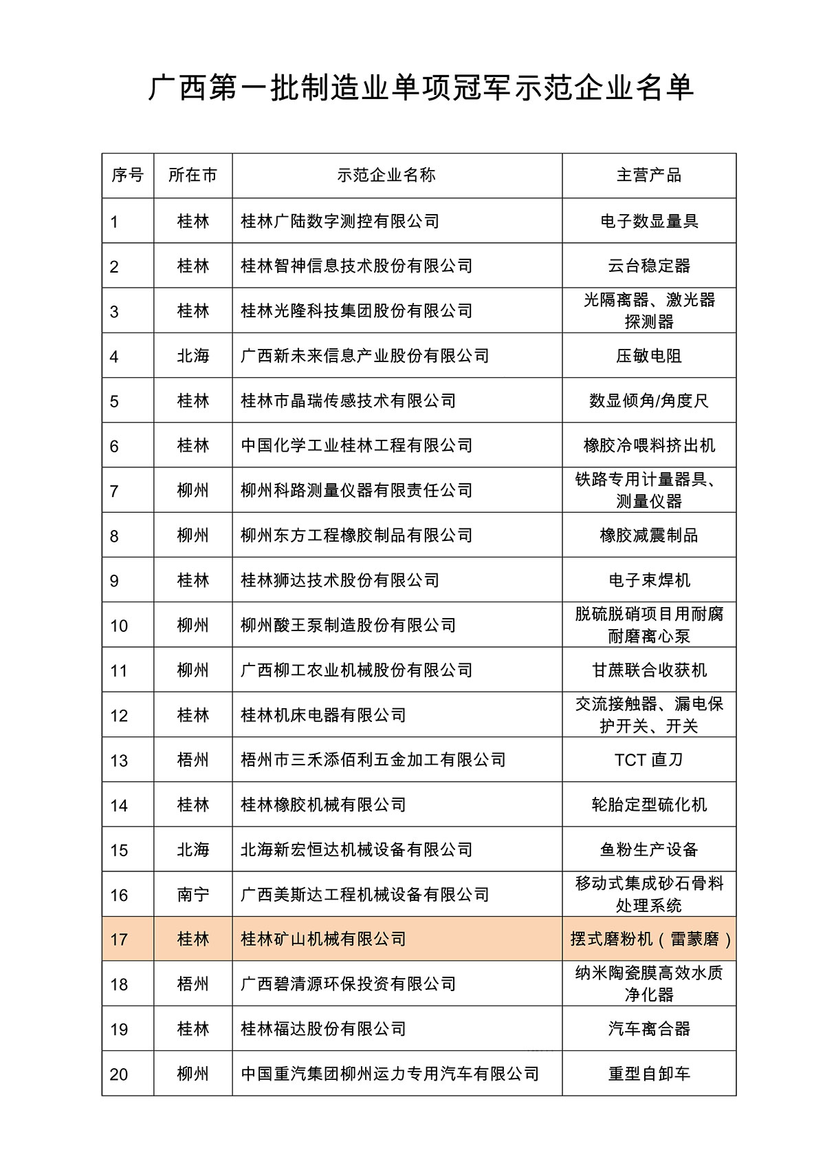 日前,自治區(qū)工業(yè)和信息化廳關(guān)于印發(fā)廣西第一批制造業(yè)單項冠軍企業(yè)名單的通知,確定了桂林礦機等42家企業(yè)成功入選廣西第一批制造業(yè)單項冠軍示范企業(yè)。