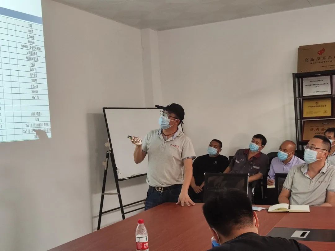 會(huì)上,研發(fā)部工程師鄧源就福建、廣西等多個(gè)氫氧化鈣生產(chǎn)線項(xiàng)目分別從方案設(shè)計(jì)、設(shè)備采購(gòu)、以及設(shè)備安裝施工過(guò)程中遇到的問(wèn)題做項(xiàng)目總結(jié)匯報(bào)。
