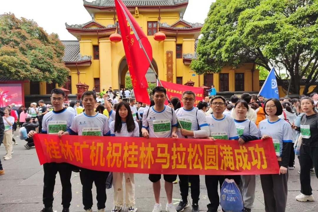 3月26日上午8:00,2023年桂林馬拉松在桂林市中心廣場鳴槍開跑。來自全球11個(gè)國家和地區(qū)的3萬名選手,齊聚山水甲天下的煙雨桂林,在賽道上熱血奔跑。桂林礦機(jī)的跑團(tuán)成員們,高舉桂礦旗幟,縱情狂奔,成為賽道上一簇耀眼的光芒。
