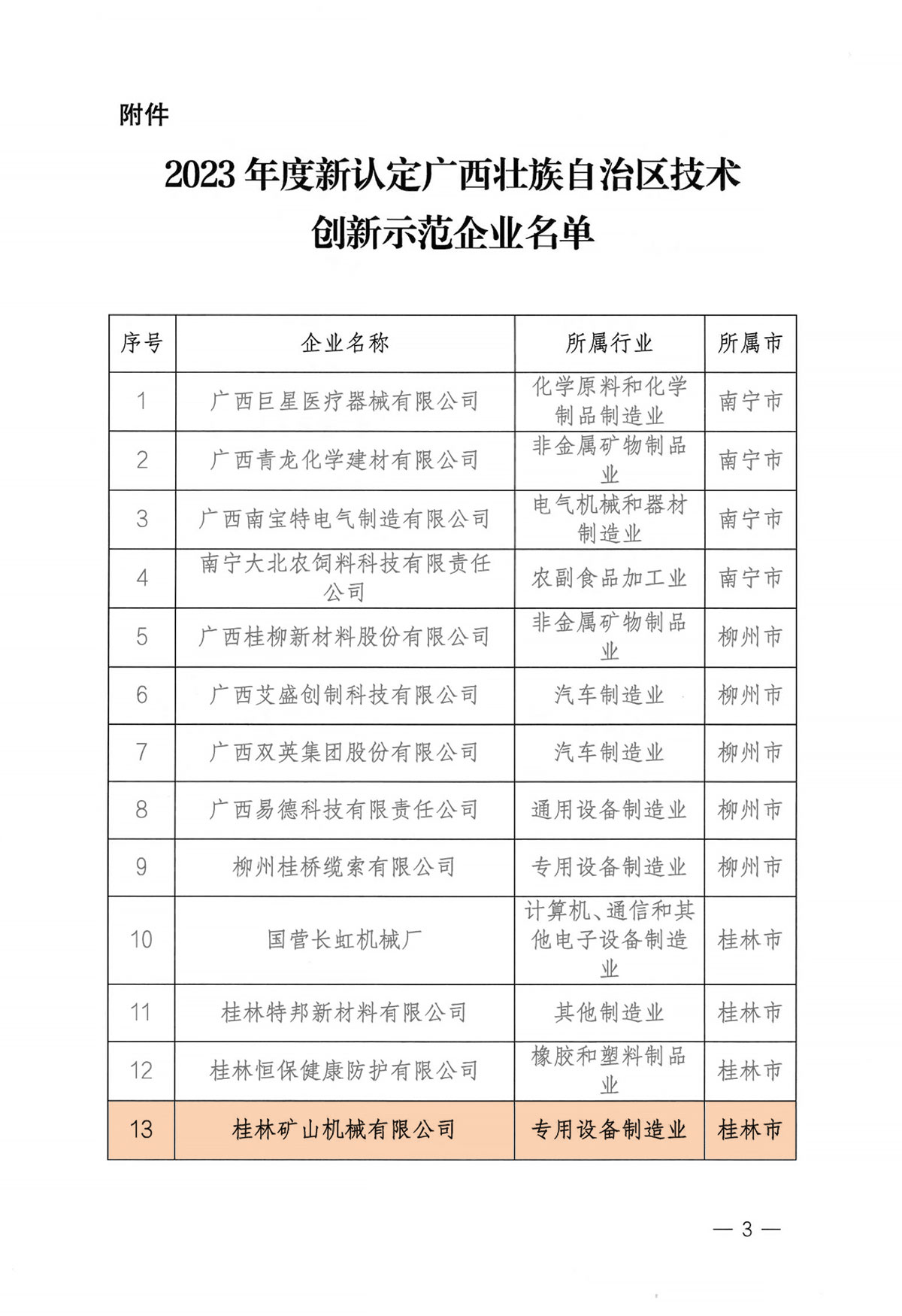 喜報(bào)!桂林礦機(jī)獲評2023年度新認(rèn)定廣西技術(shù)創(chuàng)新示范企業(yè)