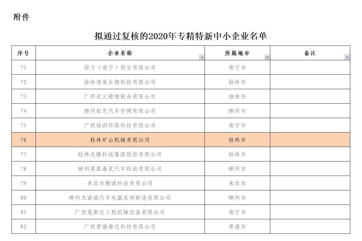 喜報(bào)!桂林礦機(jī)通過(guò)自治區(qū)工信廳2020年專精特新中小企業(yè)復(fù)核公示